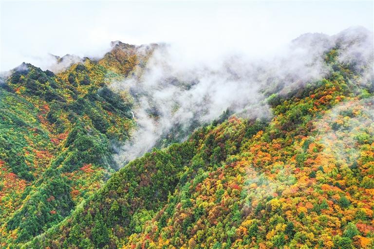 地下泉水從巖縫里潺潺流出,山色斑斕、鳥鳴婉轉(zhuǎn),水霧彌漫林間,絡(luò)繹不絕的游客從谷底沿著曲折縈回的木棧道溯源而上,不由得驚嘆于大自然鬼斧神工的造化。