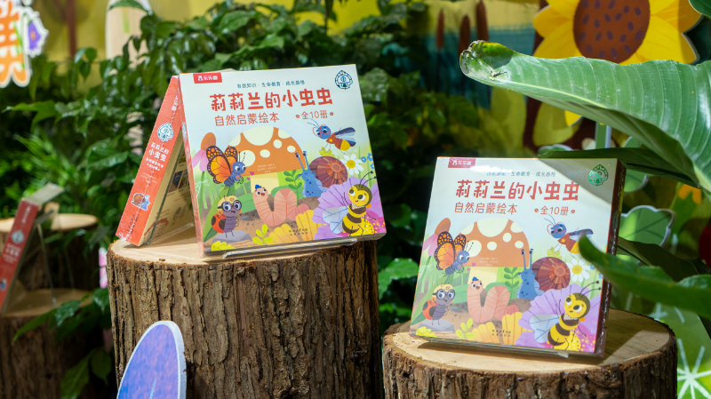 在榮信文化的展位上,也特別設(shè)置了一塊占地14平米的“莉莉蘭的小蟲蟲 沉浸式花園打卡區(qū)”,其中擺放了數(shù)十個(gè)大小不等的真實(shí)微景觀造景,編輯手工捏制了不同造型的小蟲蟲輕粘土藏身其中,吸引來來往往的孩子們駐足尋找。