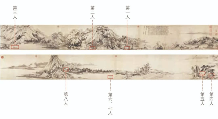 說(shuō)第九位人物之前,我們先來(lái)看看上圖展示的已經(jīng)形成共識(shí)的八位人物。從形象上看,這八位人物大概為高士、樵夫和漁父。詳細(xì)解讀這八位人物之前,我們不妨先一起找尋一下隱藏的第九位神秘人物。