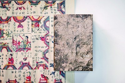 整本書在書口處還特別進(jìn)行了雕刻,并采用噴繪工藝,強(qiáng)化石面凹凸不平的質(zhì)感,讓讀者能夠觸摸書口的不同深度,豐富了觸覺上的感受。包裹書脊的紗布,經(jīng)過茶葉染色的特殊處理,呈現(xiàn)出雅致的淺褐色。