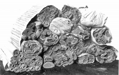 敦煌寫(xiě)卷剛剛從藏經(jīng)洞中拿出的樣子 圖片選自《滿世界尋找敦煌》