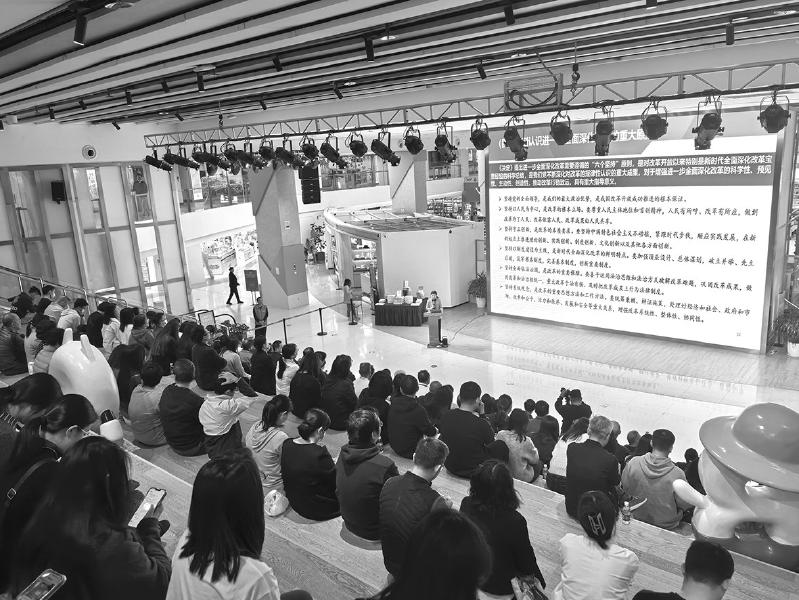 本次“進(jìn)書(shū)城”活動(dòng)的宣講員均為學(xué)習(xí)貫徹黨的二十屆三中全會(huì)精神深圳市委宣講團(tuán)成員,是來(lái)自全市各有關(guān)高校馬克思主義學(xué)院的專家學(xué)者。宣講活動(dòng)中,他們用通俗易懂、生動(dòng)形象的語(yǔ)言,將全會(huì)精神深入淺出地展現(xiàn)在市民讀者面前。