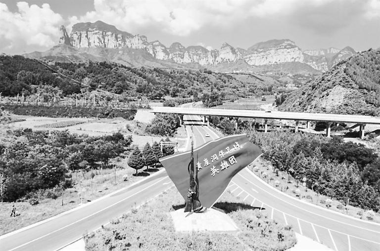 “黃崖洞保衛(wèi)戰(zhàn)英雄團”的戰(zhàn)旗映入眼簾。