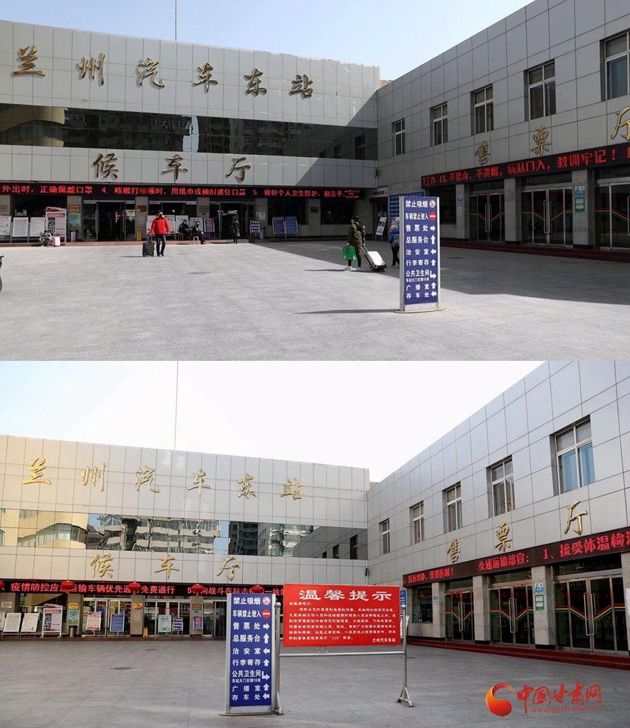 3月3日(圖上)與2月4日(圖下)拍攝的蘭州汽車(chē)東站