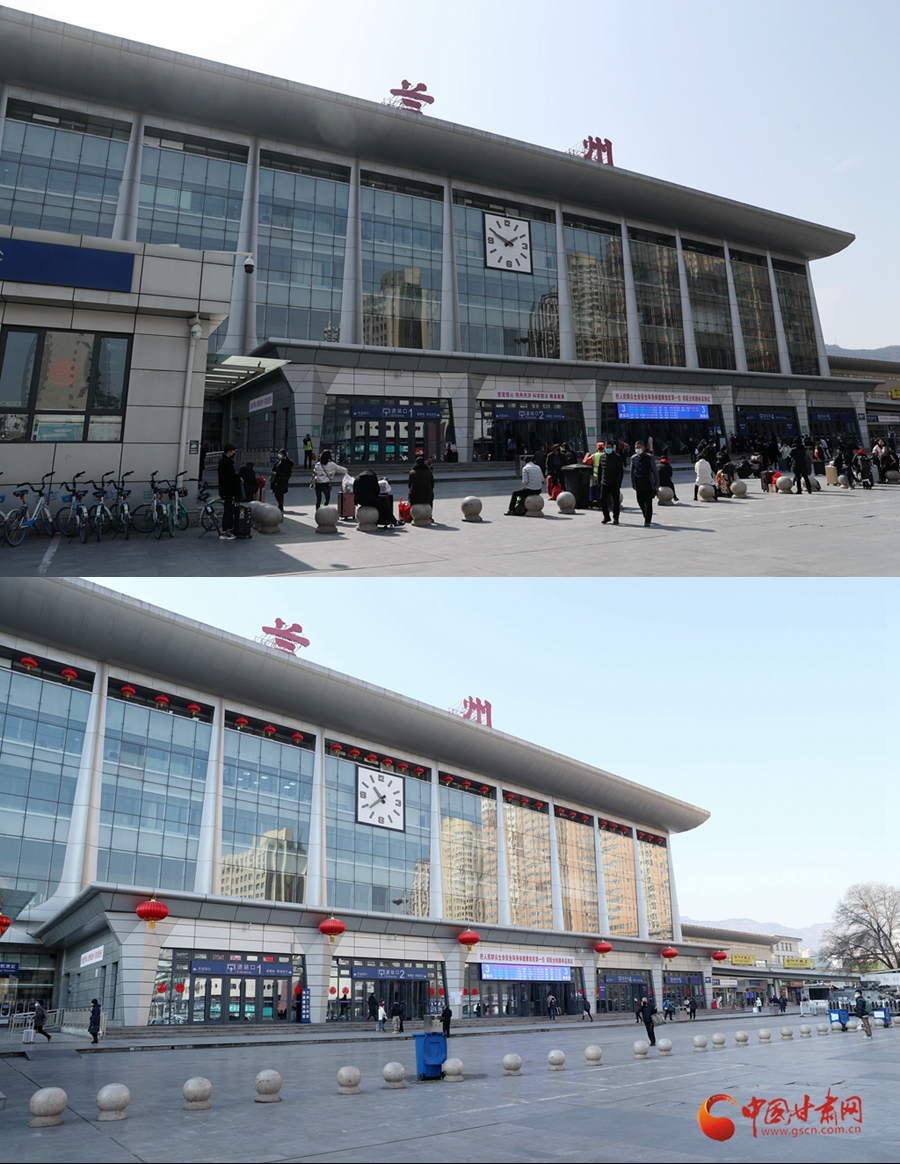 3月3日(圖上)與2月4日(圖下)拍攝的蘭州火車(chē)站