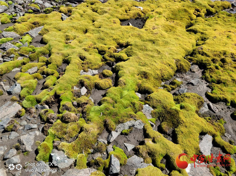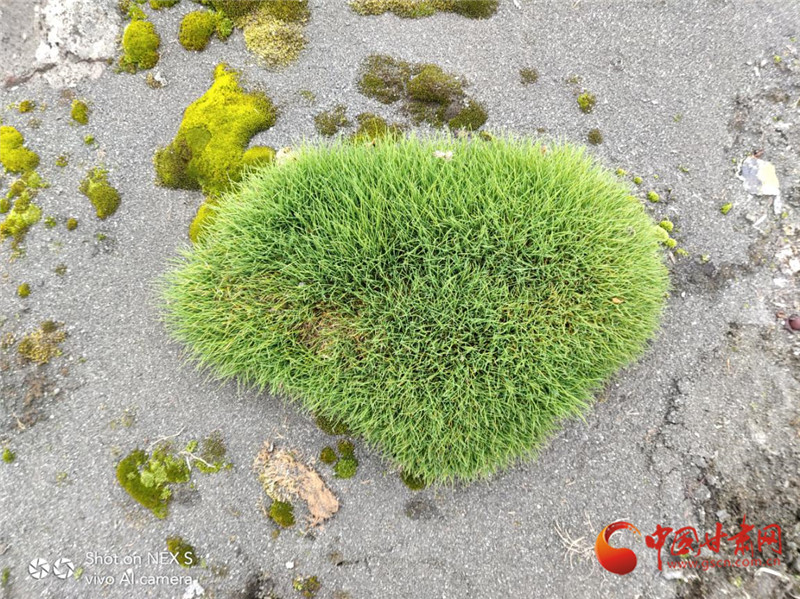 “厚厚的苔蘚遠(yuǎn)看像一大片草原,近看這‘綠絨毯’上還長(zhǎng)著南極發(fā)草呢。有時(shí)候我覺得大自然也很神奇,在這么惡劣的自然條件下,竟然還有生長(zhǎng)如此茂盛的植物。”
