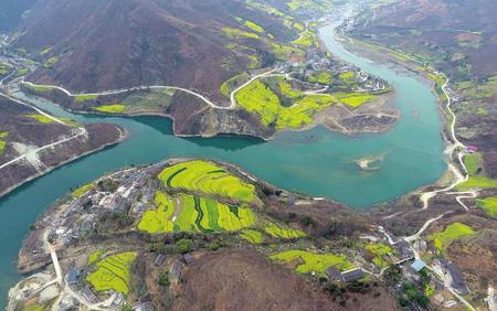 近日,讓水河迎來一年中最美的季節(jié)。逶迤的青山、彎曲的河道,被大片大片盛開的油菜花渲染成一幅春光畫卷。澄碧的江水倒映著近水的村莊和連綿的群山,金黃的油菜花、潔白的櫻桃花、粉紅的桃花相互輝映,偶爾一條小船劃入河中,蕩起層層漣漪……