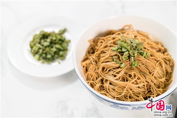 香椿頭拌面,正當季的香椿頭整理一番切成細末,坐鍋上灶小火慢慢熬香,搭配瀝干裝碗的蘇式細面,將蔥油香椿末挖一大勺蓋上拌著吃……