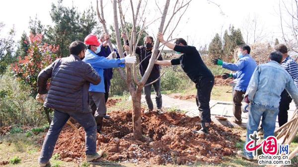 合力扶苗、揮鍬填土、踩實(shí)壓緊、提桶澆水……3月10日,在湖南省武岡市荷塘村義務(wù)植樹(shù)基地,黨員群眾分工協(xié)作、相互配合,每個(gè)環(huán)節(jié)都一絲不茍。經(jīng)過(guò)一上午的忙碌, 一棵棵櫻花樹(shù)迎風(fēng)挺立,把山頭裝點(diǎn)得綠意盎然。今年,武岡繼續(xù)啟動(dòng)55個(gè)美麗鄉(xiāng)村綠化美化建設(shè),繼續(xù)改善城鄉(xiāng)環(huán)境,提高人民群眾的獲得感和幸福感,為爭(zhēng)創(chuàng)省級(jí)森林城市“添磚加瓦”。