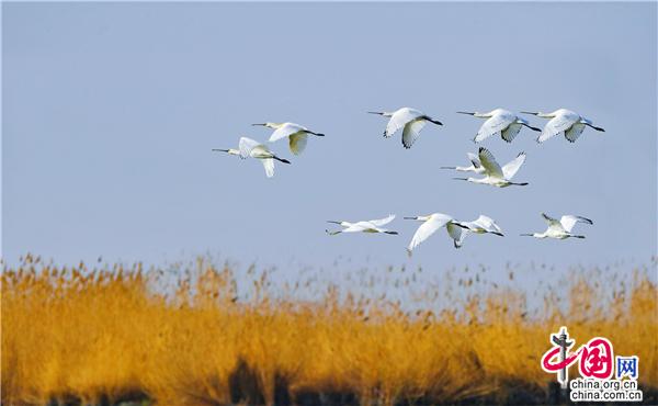 春天的沙湖,草長鶯飛,萬物復(fù)蘇,百鳥翔集,遠(yuǎn)處湖面上波光粼粼,在和風(fēng)的愛撫下,漾起層層漣漪。得益于優(yōu)美的自然環(huán)境以及良好的濕地生態(tài),鳥兒們早已遷徙至此,成群的天鵝、白琵鷺、蒼鷺、潛鴨等眾多候鳥早早的抵達(dá)沙湖,或是流連嬉戲,亦或是歇腳覓食,一幅和諧美好的春日美景圖栩栩展現(xiàn)在眼前。