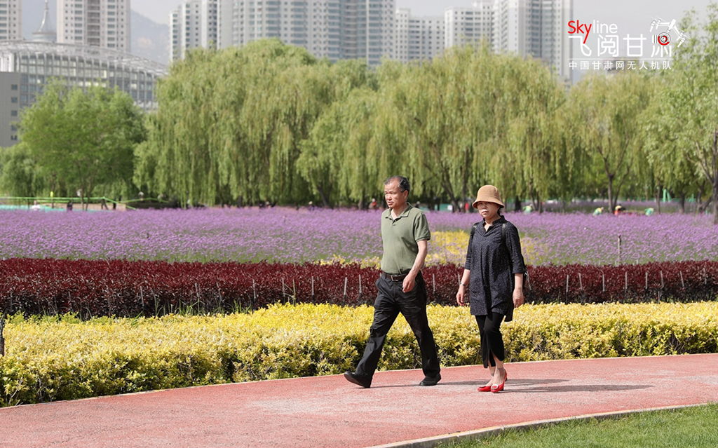 進(jìn)入六月,蘭州馬拉松公園種植的大片馬鞭草已進(jìn)入花期,還有醉蝶花、金雞菊、金娃娃萱草等花卉點綴出豐富的色帶,讓大河之城更具詩情畫意。下面請跟著中國甘肅網(wǎng)《飛閱甘肅》的鏡頭從空中俯瞰夏日的花海,然后再來個鮮花特寫,感受市民徜徉其中的那份愜意。