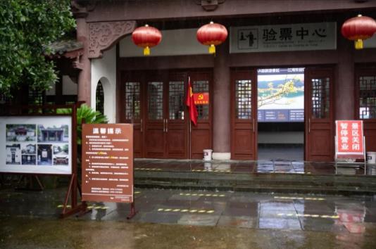 受持續(xù)強降雨影響,婺源江灣景區(qū)入口豎立起了“景區(qū)關閉、暫停營業(yè)”的提示牌