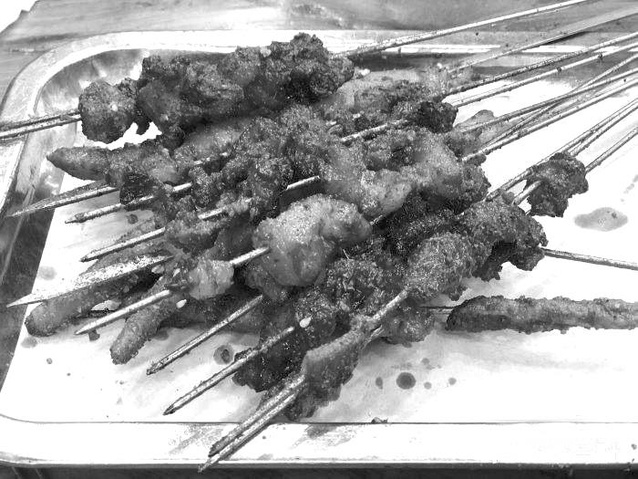 一般到下午四五點鐘就賣完了,把生意留給對面的烤肉??救鈱儆诟煽镜牧髋桑恳淮际侨菀环?,很香。
