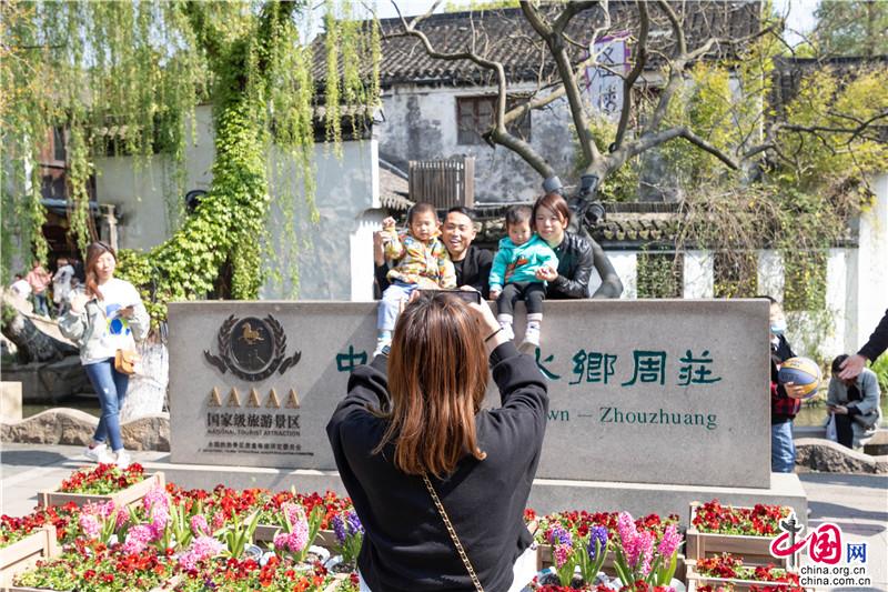 清明小長(zhǎng)假前兩日,周莊景區(qū)迎來一批批尋春而來的游客,漫步古鎮(zhèn)覓春韻,踏青田園賞花海。