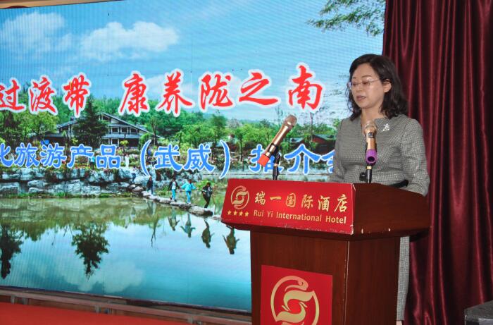 胡桂蕓在致辭中說,隴南和武威兩市文化旅游資源各具特色、互有優(yōu)勢,具有很強(qiáng)的差異性和互補(bǔ)性,隨著“一帶一路”建設(shè)的深入推進(jìn),兩地經(jīng)濟(jì)社會(huì)和文化旅游的交流將更加活躍。尤其是環(huán)西部火車游旅游專線列車的開通,更加拉近了兩地的時(shí)空距離,極大地方便了兩地游客的出行。通過今天的推介活動(dòng),我們希望參加會(huì)議的旅行社、自駕游俱樂部,多組織武威的游客來隴南觀光旅游、康養(yǎng)休閑。同時(shí),也希望隴南的文旅部門及旅游景區(qū)、旅行社提供各種優(yōu)惠以及優(yōu)質(zhì)服務(wù),為促進(jìn)兩地文化旅游事業(yè)的合作共贏做出積極的貢獻(xiàn)。