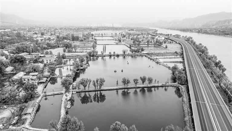 在永靖縣城,沿新修的濱河路西行,一路上芳草茵茵、楊柳依依,心曠神怡。這里是鹽鍋峽水庫的上游,水面寬闊,水速平穩(wěn),形成了許多池塘。碧水映襯著蘆葦、荷葉,遠(yuǎn)山相依著藍(lán)天、白云,風(fēng)光秀麗、景色宜人,是假期休閑的好去處。