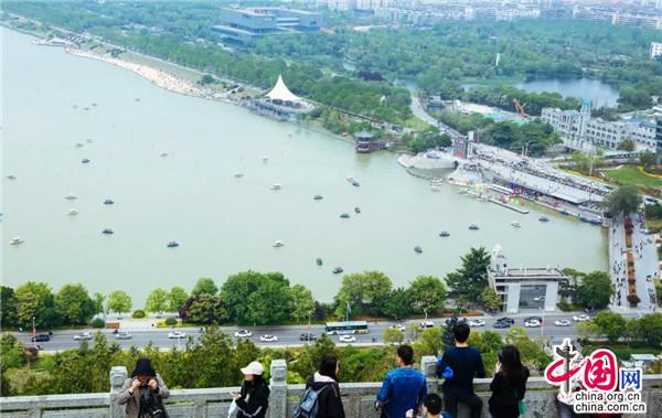 在大洞山、督公湖景區(qū),小丑嘉年華、氣球玩偶秀、魔法實(shí)驗(yàn)室等成為假日溜娃的好去處,大小朋友在碧水藍(lán)天下與白鴿零距離互動,呈現(xiàn)了人與自然的和諧相處,非物質(zhì)文化遺產(chǎn)項(xiàng)目表演“一葦渡江”中的漢服小哥衣袂飄飄地立于竹竿上,成為督公湖上一道靚麗的風(fēng)景線。