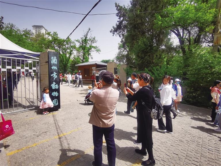 “我要和動物園的大門合影” “快來給我和‘蘭州市動物園’的大牌子拍張照”……5月7日10時許,前往蘭州市動物園游玩的市民絡(luò)繹不絕,大門口懸掛著的略顯斑駁的黑底綠字的“蘭州市動物園”的門牌,仿佛是最能觸動人們記憶的“坐標(biāo)點”,大家排隊再和它照張相成為進園的固定儀式。