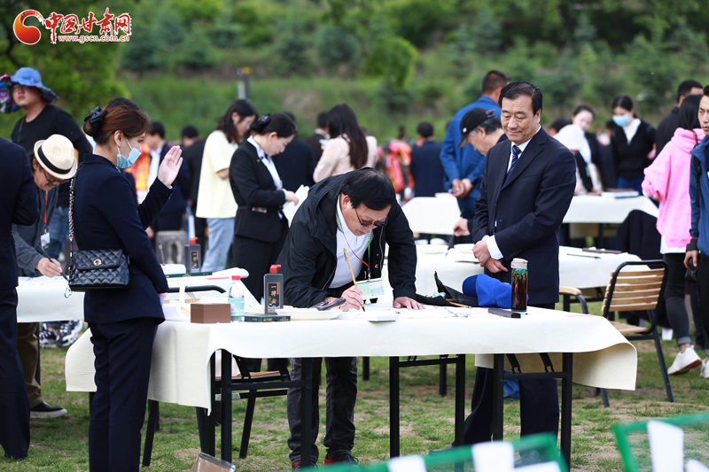 作為平?jīng)鲠轻嘉幕糜喂?jié)的一項(xiàng)重要活動,來自全國各地共計30余名書畫家在參加完書畫名家精品展開幕式后,深入華夏古槐王景區(qū)采風(fēng)并現(xiàn)場揮毫潑墨,用水墨丹青為崇信“留影”,用詩情畫意細(xì)述崇信故事。活動現(xiàn)場氣氛熱烈,書畫家們筆走龍蛇、各展所長,創(chuàng)作了多幅描繪崇信風(fēng)貌的書畫作品。他們或顏筋柳骨、筆力遒勁,或妙筆丹青、氣韻生動,贏得了現(xiàn)場嘉賓嘖嘖稱贊。
