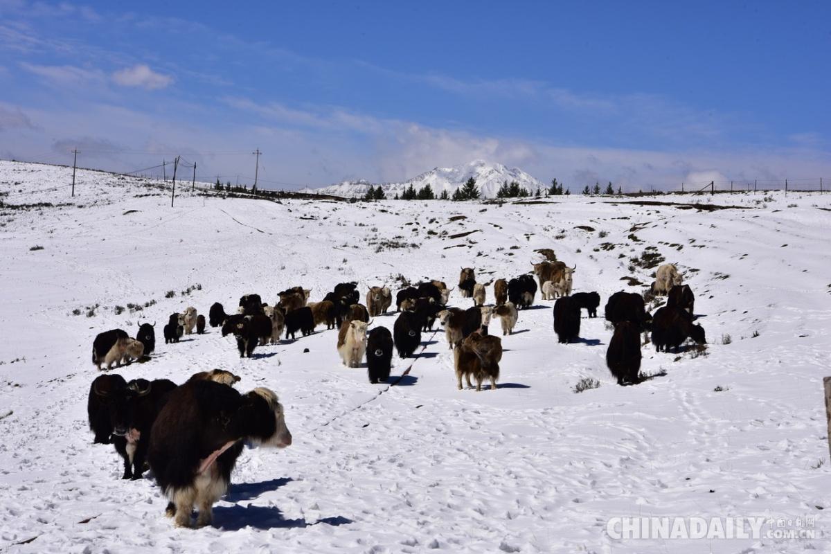 甘肅肅南中華裕固風(fēng)情走廊景區(qū)迎降雪,銀裝素裹,美輪美奐。