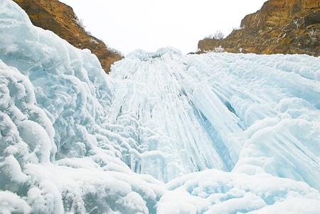 往日飛流直下的山泉瀑布,在冬日里幻化成一排排幾十米寬的銀瀑,從崖壁上垂瀉而下。山谷下,石壁間,清一色的玉白,宛如一座巨大的冰簾,順著崖壁的走勢,或凸出或凹進,層層疊疊將整個峽谷環(huán)抱起來。冰瀑、冰簾、冰柱、冰舌,有的相銜相連,有的各自為政,交替排列。如雕似塑,似瑪瑙,像琉璃,晶瑩透亮。冰下暗流涌動,嘩嘩的水聲,由高到低在冰下輕響。一時間,仿佛置身于潔白無瑕的童話世界。朋友不住地贊嘆:“這才是真正的冰清玉潔!”