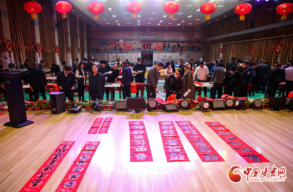1月25日晚,甘肅省酒泉市教育局機(jī)關(guān)黨支部舉辦了寫(xiě)春聯(lián),迎新春活動(dòng)?;顒?dòng)現(xiàn)場(chǎng),來(lái)自市區(qū)兩級(jí)書(shū)協(xié)、美協(xié)及教育系統(tǒng)的書(shū)法家們筆走龍蛇,潑墨揮毫,行、隸、草等多種書(shū)體各顯神韻,一幅幅充滿喜慶、祝福的對(duì)聯(lián)在書(shū)法家的手中隨筆而出,為迎接新春佳節(jié),弘揚(yáng)傳統(tǒng)文化,營(yíng)造歡樂(lè)、祥和的節(jié)日氛圍。