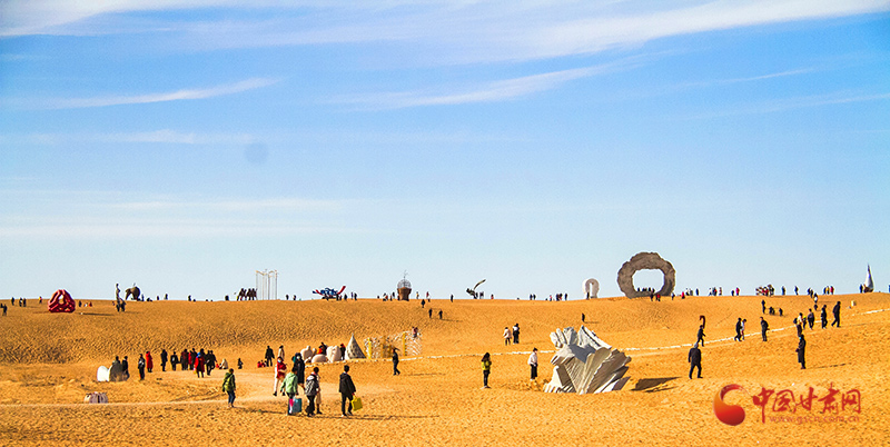 “在沙漠里賞雕塑、過大年,已經(jīng)成為一種‘新年俗、新常態(tài)、新時(shí)尚’。” 民勤縣文體廣電和旅游局局長方煜介紹說,中外藝術(shù)大師們精心創(chuàng)作的117件雕塑藝術(shù)精品永久矗立在浩翰沙漠中,見證了一個(gè)從無到有、點(diǎn)“沙”成金的奇跡,成就了全球首個(gè)沙漠雕塑藝術(shù)主題公園,四海賓朋聞?dòng)嵪嗉s、絡(luò)繹而來,感受民勤生態(tài)環(huán)境治理成果,見證民勤生態(tài)文明建設(shè)成效。