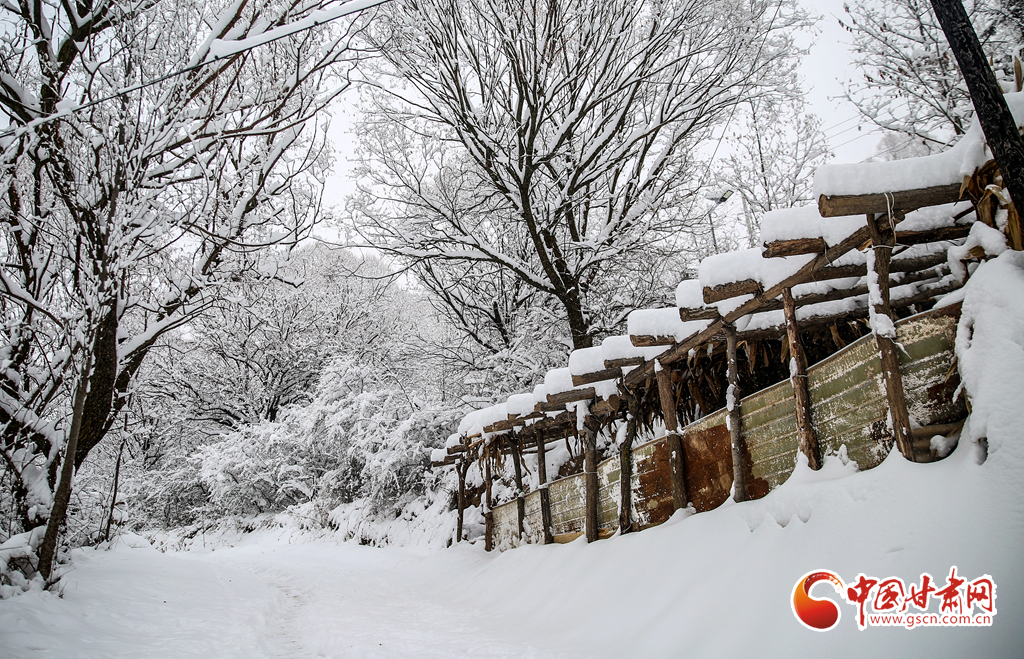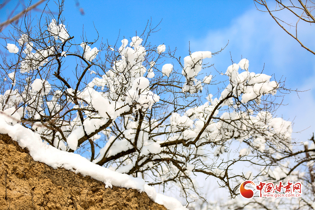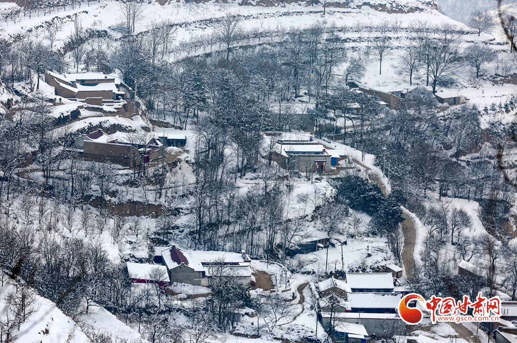 2月8日,雪過天晴,甘肅省平涼市靜寧縣賈河鄉(xiāng)侯山村銀裝素裹,美不勝收。果園、梯田、房屋、公路及遠山構成了一幅天然的鄉(xiāng)村畫卷。