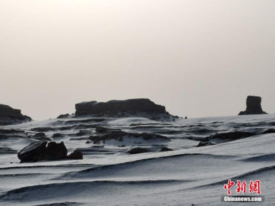 俗話說(shuō)“春雪貴如油”,被稱(chēng)為“中國(guó)最干旱的地方之一”的甘肅敦煌大漠落雪是一件十分稀罕的事兒。潔白的雪花漫天飛舞,千姿百態(tài)的雅丹在皚皚白雪的映襯下,愈發(fā)顯得栩栩如生。