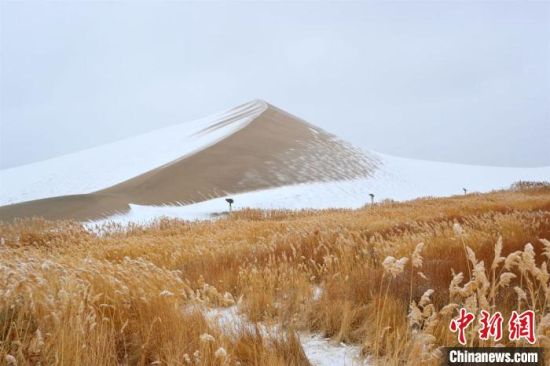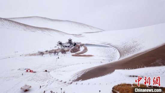 2月17日,甘肅敦煌迎來降雪天氣,大漠山川被皚皚白雪覆蓋,像一幅幅清秀淡雅的水墨山水畫。敦煌著名風(fēng)景區(qū)——鳴沙山月牙泉景區(qū)吸引游客前來觀賞難得一見的大漠雪景。這次降雪的特點(diǎn)是降雪量大,但氣溫并不是很低,游人盡情體驗“沙雪交融”的絲路盛景。(王斌銀 張曉亮)