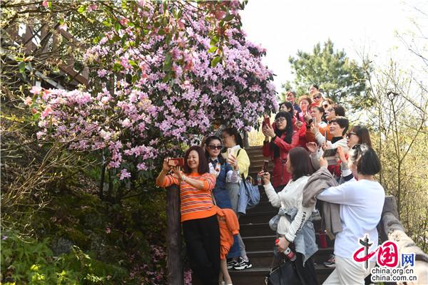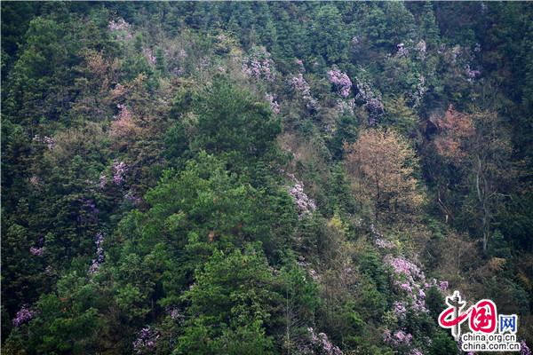 春天的穿巖山國(guó)家森林公園,漫山花開,層林盡染春色。這時(shí)候的野櫻花、野杜鵑、野映山紅竟相綻放,條條游步道宛如一條條花帶,帶著生機(jī)勃勃和滿天飄舞的芳香,讓游人心曠神怡。走在一條條蜿蜒的棧道,鮮氧環(huán)伺,鼻息間盡是春風(fēng)吹來的清新氣息。這里人文歷史與自然美景交融,既可在蜿蜒的茶馬古道,重走紅軍路,感受偉大的革命精神,又可在越河而建、凌空百丈的5D玻璃橋體驗(yàn)漫步云端的驚險(xiǎn)刺激,還可在寧?kù)o愜意的云端古村落,感受淳樸的民風(fēng)和歷史悠長(zhǎng)的農(nóng)耕文化奇葩。早晨的日出云海,中午的藍(lán)圖白云,下午的燦爛夕陽(yáng),鮮花與藍(lán)天、彩霞相映,讓人流連忘返。漫山遍野的綠意間,成團(tuán)櫻花、杜鵑、映山紅等夾雜其中,或粉紅或雪白,或紫色或丹紅,密密匝匝開滿枝頭。由于雪峰山景區(qū)的落差較高,從300米到1500米,櫻花期、杜鵑花期、映山紅花期交錯(cuò),成梯級(jí)往山背梯田景區(qū)、虎形山大花瑤綻放開來,讓賞花期能長(zhǎng)達(dá)2、3個(gè)月之久。