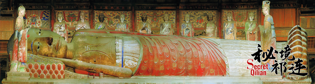 最后讓我們?nèi)グl(fā)現(xiàn),金張掖的神秘色彩,走進(jìn)始建于1098年的大佛寺。大佛殿內(nèi)塑有釋迦牟尼涅槃臥像,佛身長(zhǎng)34.5米,游客可以虔誠(chéng)地在他身旁挪動(dòng)腳步,體會(huì)宏大與渺小的強(qiáng)烈對(duì)比。