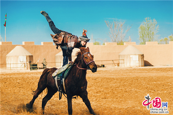 除此之外,游客在景區(qū)擂臺(tái)處不僅能夠觀看驚險(xiǎn)刺激的市井雜耍,還有每天兩場的樂隊(duì)表演不容錯(cuò)過。擂臺(tái)不遠(yuǎn)處就是今年4月1日全新推出的實(shí)景馬戰(zhàn)《烽火西夏》演出場地,看完雜耍的游客可直接到馬場觀看接下來的演出。