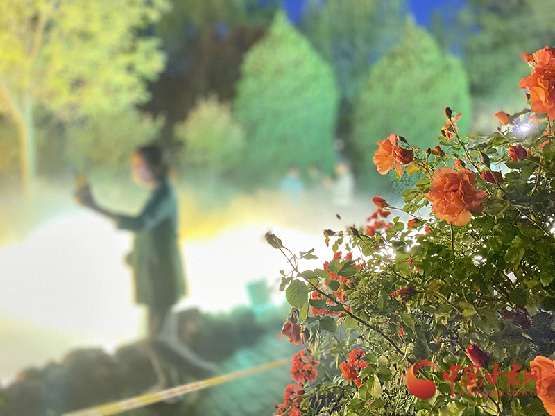 5月18日晚,蘭州市廉政文化公園內夜景吸引市民打卡