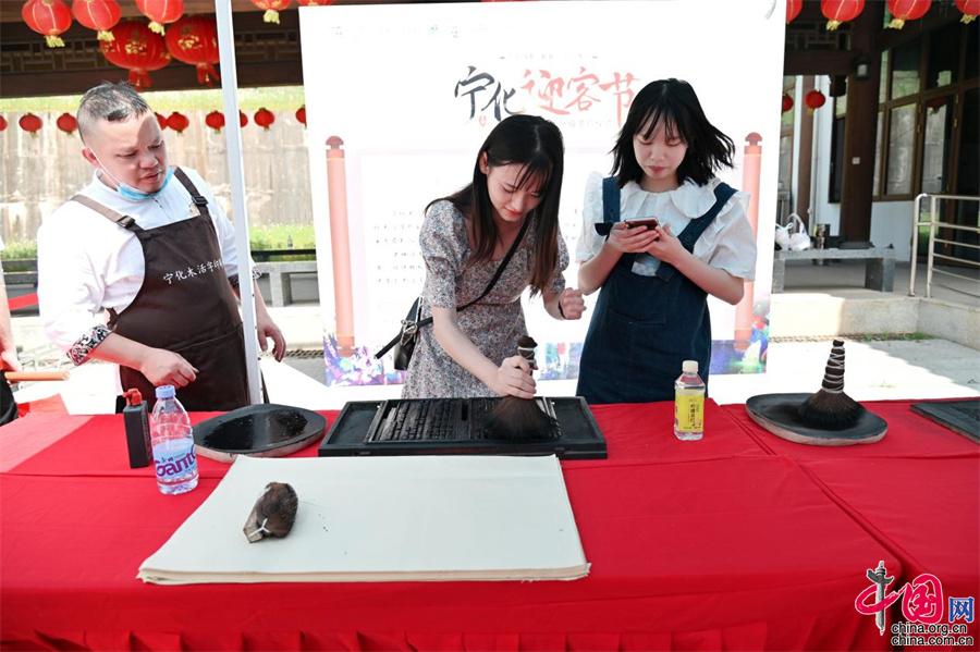古色古香的蛟湖黃慎文化園,原為清代著名畫家,揚州八怪之一的黃慎所建。他在這里讀書作畫,其詩集《蛟湖詩鈔》流傳至今。活動現(xiàn)場,游客們一邊欣賞文化園的古色印記,一邊品鑒名人書畫展,遍覽寧化四色資源。(陳祥臨)