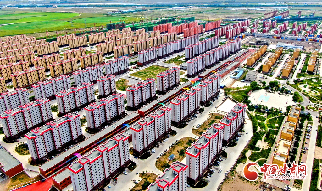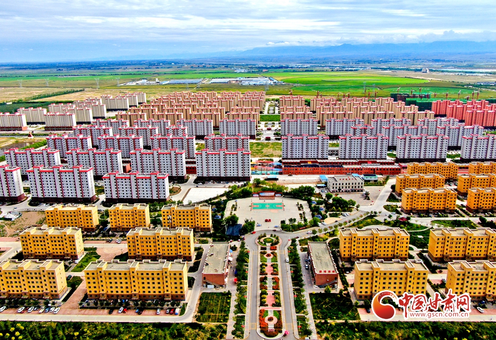 8月29日拍攝的民樂(lè)縣生態(tài)及地質(zhì)災(zāi)害避險(xiǎn)搬遷項(xiàng)目樂(lè)民新城。