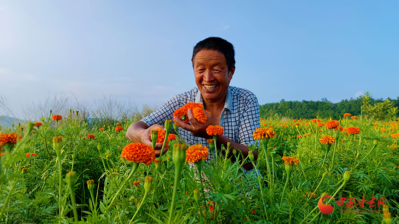 崇信:金色萬壽菊 美了環(huán)境富了民