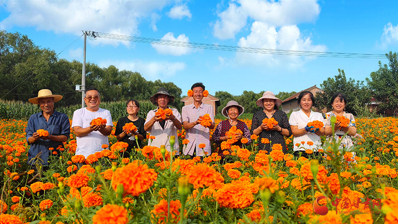 初秋時節(jié),秋高氣爽。走進崇信縣甘莊村,村容整潔、道路寬敞,綠樹環(huán)村,成熟的萬壽菊競相綻放,朵朵紅花在風(fēng)中搖曳生姿,宛如金色地毯鋪滿田間,花農(nóng)們喜笑顏開,滿臉洋溢著豐收的喜悅。