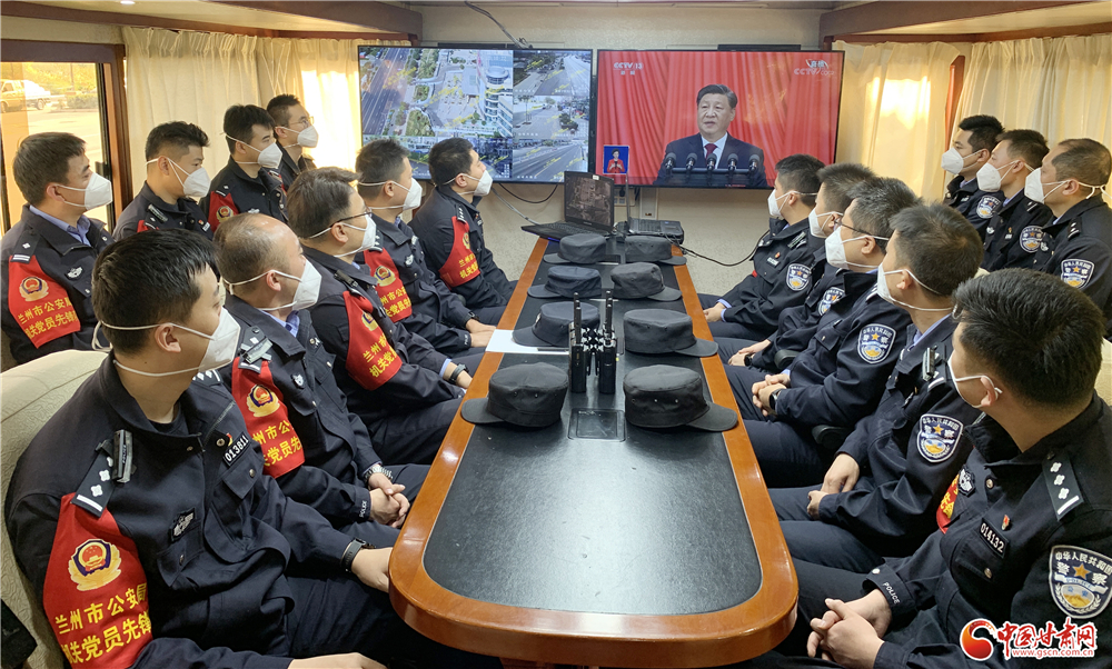 甘肅省公安廳民輔警認真收聽收看大會開幕盛況,共同見證這一歷史時刻。