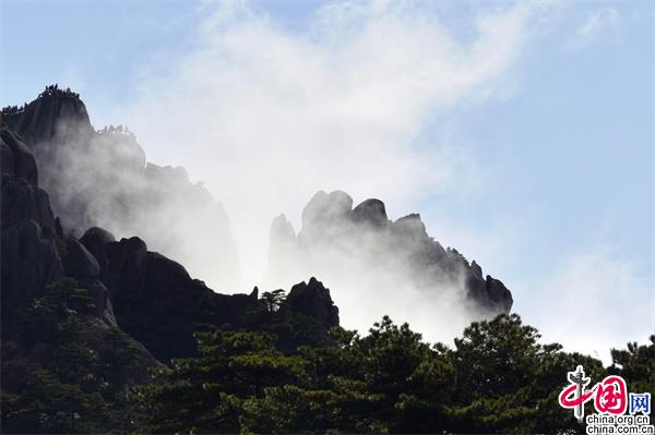 11月23日下午,安徽黃山風景區(qū)雨后放晴,山巒之中,云海彌漫,縹緲無形,奇松、怪石和群峰在的云海間時隱時現(xiàn),亦夢亦幻。