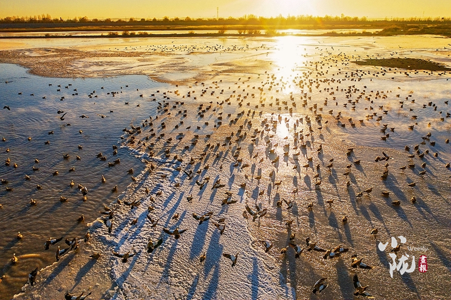 “蒹葭蒼蒼,白露為霜。所謂伊人,在水一方。”石羊河國家濕地公園因這群水鳥的曼舞翩躚、娉婷裊娜,呈現(xiàn)出令人陶醉的風景,當冬日午后的陽光鋪在河面上,可愛的“小精靈們”便臥于河面,愜意地曬著太陽,“圓潤”的身體隨著波濤慵懶搖曳,搖曳出了《詩經(jīng)》的綿綿余韻。