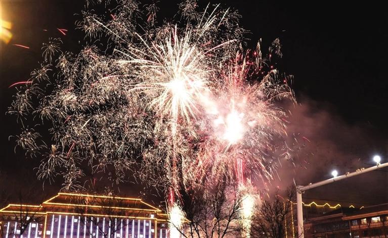 中國甘肅網(wǎng)1月30日訊 據(jù)蘭州晚報(bào)報(bào)道(記者 王萬盈 通訊員 包興鵬 文/圖)1月28日晚,白銀市白銀區(qū)兔年新春首波煙花秀“焰遇銀鳳·萬花迎春”在白銀區(qū)政府南側(cè)空地璀璨綻放。5000余發(fā)各式焰火在夜空中長達(dá)30分鐘美輪美奐的“表演”,在帶給圍觀群眾視覺盛宴的同時(shí),也帶給人們無數(shù)有關(guān)春節(jié)的美好回憶。