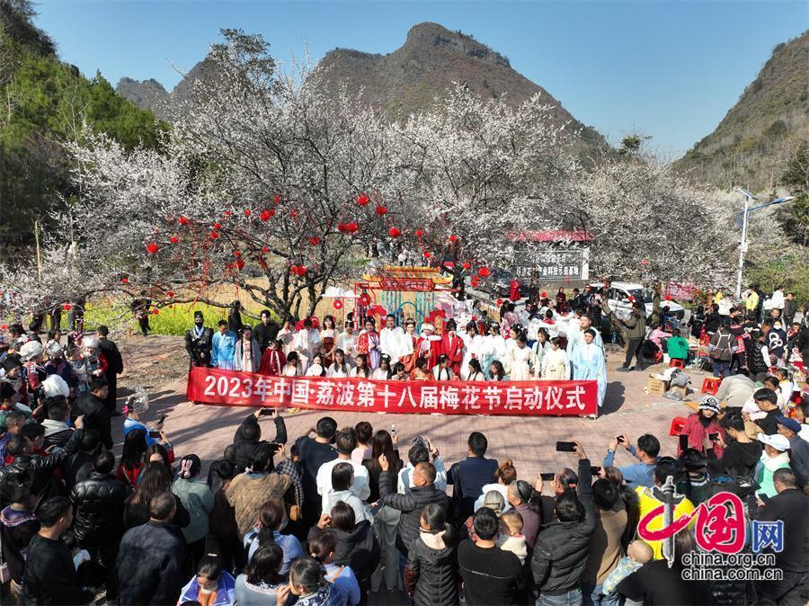 眼下,荔波縣萬畝梅原景區(qū)已經(jīng)進(jìn)入最佳觀賞期。1月30日,2023年中國·荔波第十八屆梅花節(jié)開幕,八方游客齊聚荔波縣黎明關(guān)水族鄉(xiāng)萬畝梅原景區(qū),聽曲、賞梅、品茗、觀演出,共賞梅原盛景。