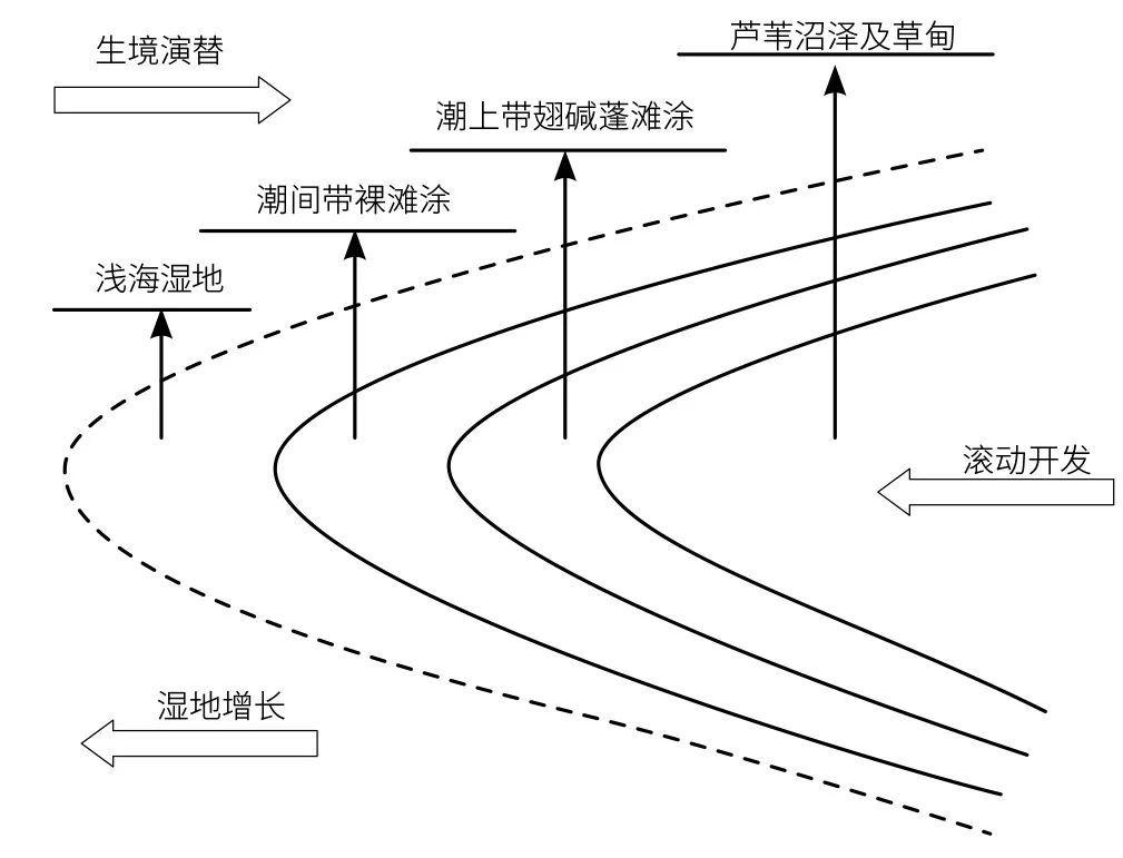 識別海平面上升和濱海濕地圍墾影響下,濱海濕地生態(tài)系統(tǒng)潛在陸向遷移通道及其遷移格局,劃定適應海平面上升的預留藍線。
