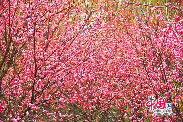 湖南新邵縣委黨校數千株寒梅迎春綻放。中國網發(fā)
