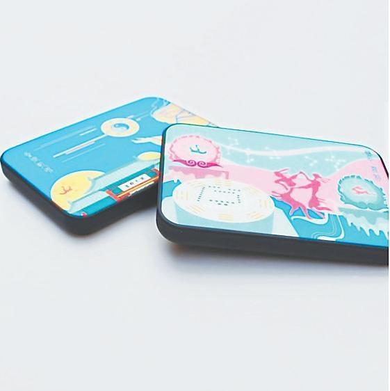 圖案來源于伏羲女媧因分別從山頂推下的兩磨盤緊緊結合的現(xiàn)象驗證了上蒼意圖,決定繁衍后代的傳說?;瘌B騰飛之日與玉兔奔騰之月隔著天河星辰分懸兩邊,繪有河圖的磨盤見證生命的起源,雙人自由舞動的身軀揚起歡騰的節(jié)律,完美契合于陰陽諧振的樂音。美好寓意的組合充溢起整個載體,令人傾心又矚目于彩色流韻的真景里。