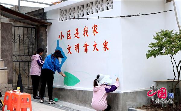 現(xiàn)場,大家手持畫筆和顏料板,相互分工協(xié)作,以墻為紙,認真細致的設計墻繪內(nèi)容,筆起筆落間,一幅幅栩栩如生、色彩絢麗的城市文明新畫卷躍然墻上。