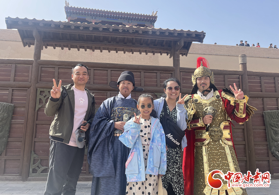 中國甘肅網(wǎng)5月3日訊(通訊員 陳楚)“開城,迎賓。”5月1日上午,在嘉峪關(guān)關(guān)城景區(qū),隨著號(hào)角聲響起,兩名門衛(wèi)士兵緩緩打開城門,來自全國各地的游客,隨著守門將軍的步伐,誓師出征,游客們置身歷史氛圍,仿佛回到古時(shí)的大漠邊關(guān)。
