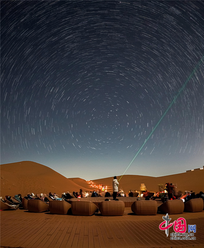 在沙漠區(qū),游客晨觀大漠日出,昏賞沙海夕陽,夜晚宿在星星酒店,感受躺在床上看星星的奇妙體驗,在星咖啡手工制作星星原木版畫,在五行沙療室滋養(yǎng)生命的每一個細(xì)胞,在觀星谷跟著星空講師春看獅子座、夏觀銀河、秋尋仙女座、冬追獵戶座,期待與一場流星雨的不期而遇。