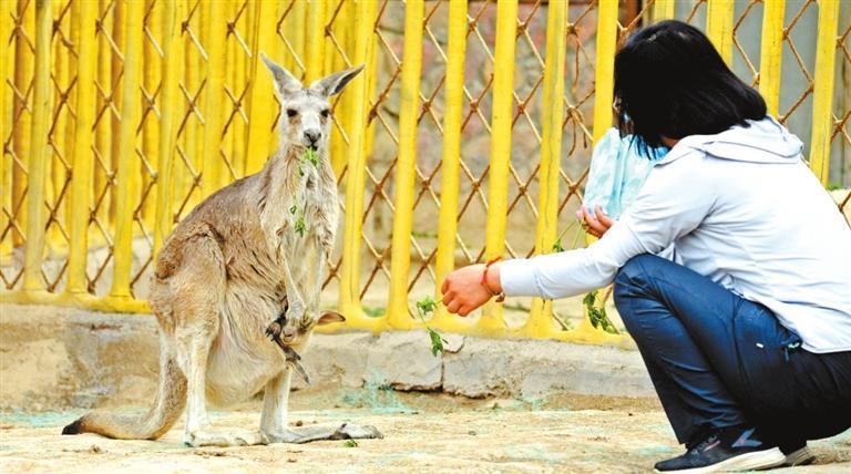 而7個(gè)月大的灰袋鼠還躲在媽媽的育兒袋里,飼養(yǎng)員說(shuō)還有一個(gè)月,它就可以下地走路了。